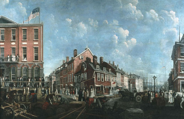 For a year, the brokers of the NYS&EB would formally meet under the tree to make their trades. In 1793, a group of stockbrokers built the Tontine Coffee House (pictured above) at the intersection of Wall and Water streets. This quickly became the new meeting place for trade and correspondence.